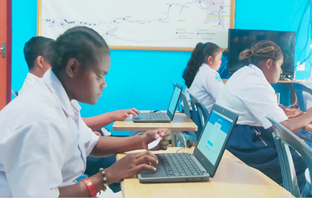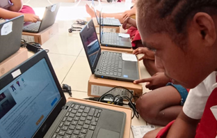 Demi mengikuti ujian ANBK sebanyak 25 siswa-siswi SD Inpres 7 Sayosa Kab Sorong memanfaatkan Jaringan Palapa Ring Timur
