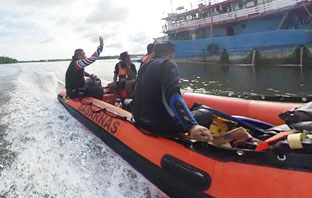 Pemeriksaan kabel laut di sungai Pomako yang menjadi jalur kabel laut Palapa Ring Timur segment Timika - Agats & Timika - Dobo, Rusly FOP Timika bersama PADI dan tim BASARNAS Timika.