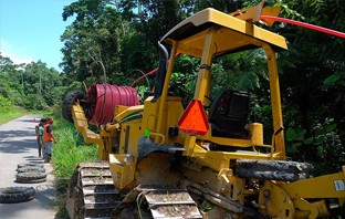 Proses penggelaran selubung HDPE untuk pelindung kabel serat optik Palapa Ring Timur menggunakan mesin Vermeer di jalur antara Teluk Bintuni - Manokwari
