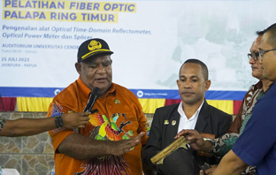 PT Palapa Timur Telematika turut andil dalam membimbing pengenalan dan praktek penggunaan alat fiber optic di Universitas Cenderawasih di Jayapura.