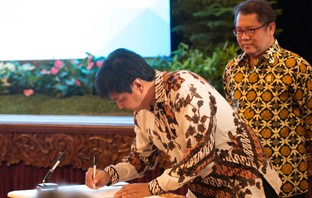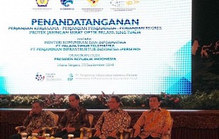 Penandatanganan Perjanjian Kerjasama untuk Proyek Palapa Ring Paket Timur antara Kemkominfo dan PT Palapa Timur Telematika disaksikan oleh Presiden RI.