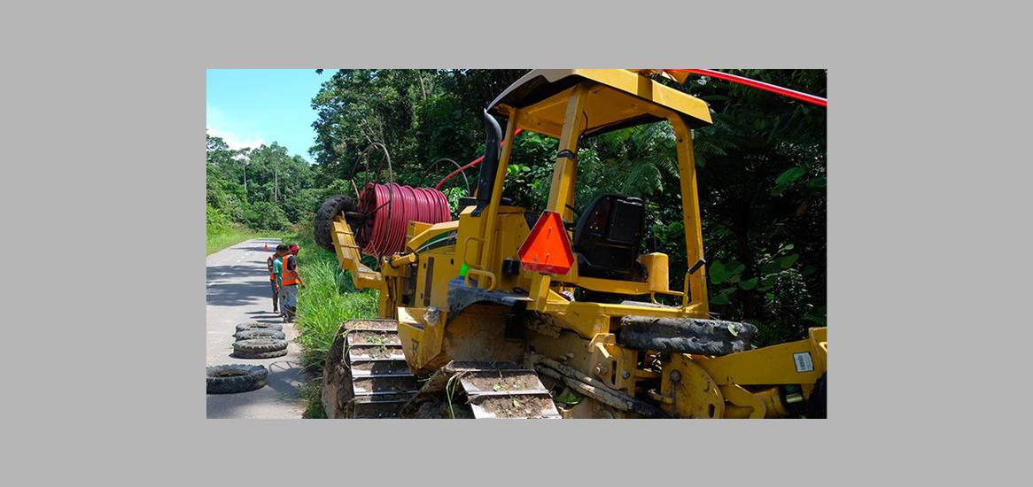 Proses penggelaran selubung HDPE untuk pelindung kabel serat optik Palapa Ring Timur menggunakan mesin Vermeer di jalur antara Teluk Bintuni - Manokwari, Sabtu (12/5/2018).(KOMPAS.com/Yoga H. Widiartanto)