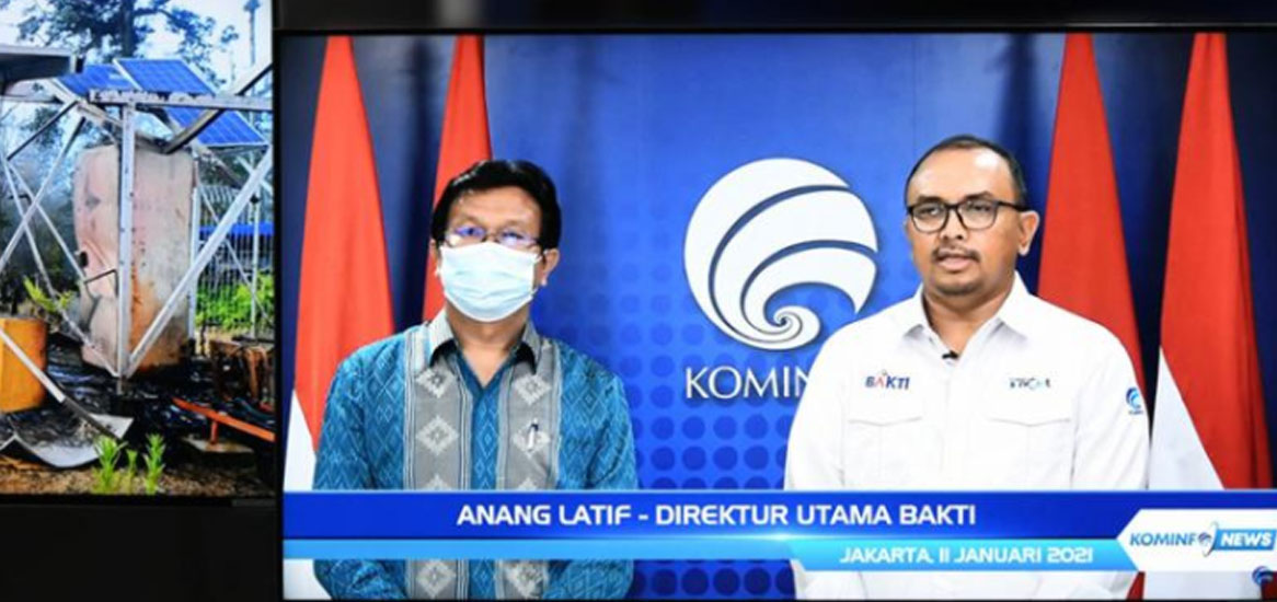Foto: Kominfo : Dirut BAKTI Kementerian Kominfo Anang Latif bersama Direktur Operasional PT Palapa Timur Telematika, Eddy Siahaan dalam Konferensi Pers Virtual Gangguan Pembakaran Jaringan Palapa Ring Timur di Papua dari Press Room Kementerian Kominfo, Jakarta, Senin (11/01/2020). - (AYH)