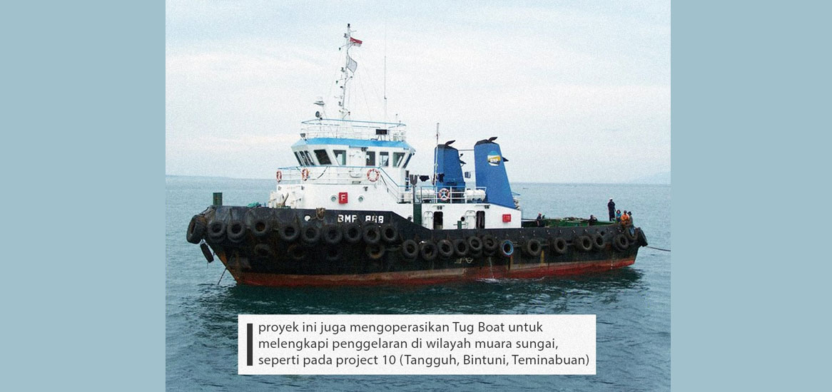 Proyek ini juga mengoperasikan Tug Boat untuk melengkapi penggelaran di wilayah muara sungai, seperti pada project 10 (Tangguh, Bintuni, Teminabuan).