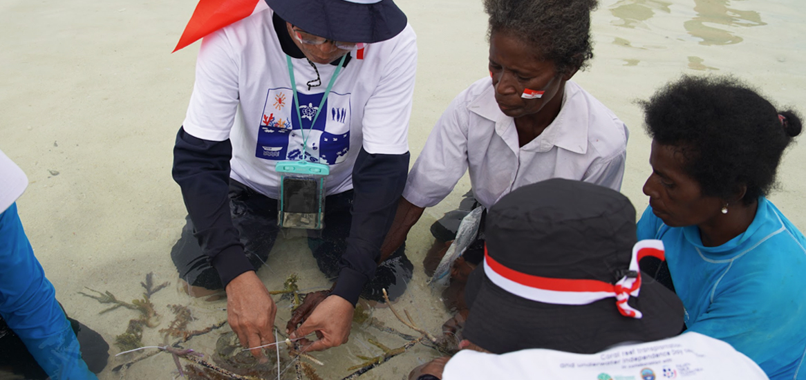 Kelompok masyarakat dari Kampung Yomakan seperti Mama Ira, Tapapai, dan Somus turut ambil bagian secara aktif dalam proses transplantasi, mulai dari persiapan, penanaman, hingga pemantauan pasca-transplantasi. Kehadiran mereka menjadi bagian penting dari pendekatan kolaboratif dan berbasis komunitas dalam menjaga keberlanjutan sumber daya laut.
